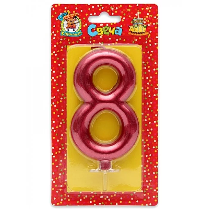 Свеча для торта Красный металлик (большая) Цифра 8 С-1860 466-5-305-41860-6