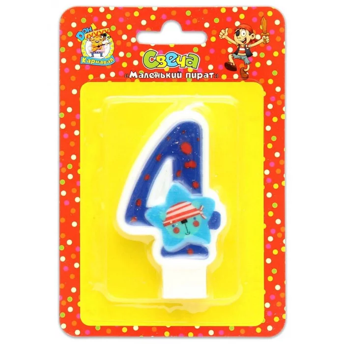 Свеча для торта "Маленький пират". Цифра "4" С-0443
