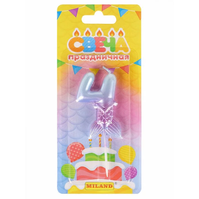 Свеча для торта "Русалка", фиолетовая. Цифра "4" С-7232