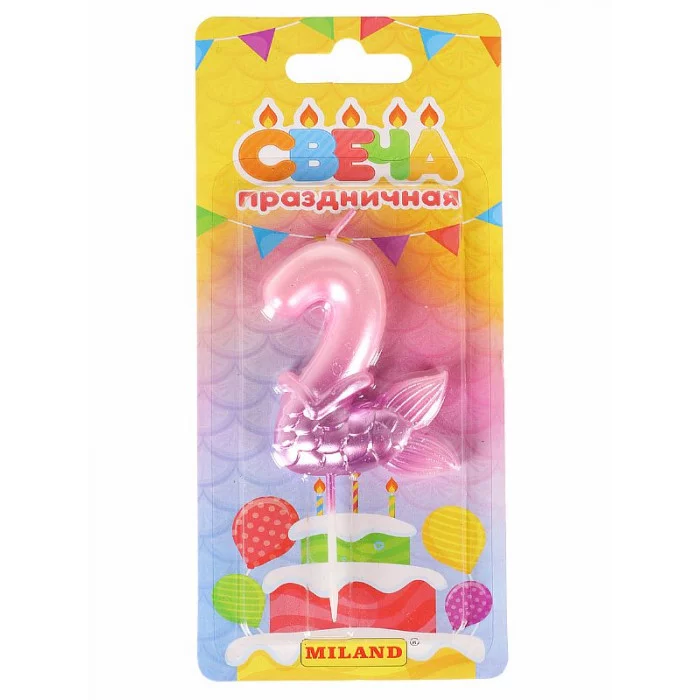 Свеча для торта "Русалка", розовая. Цифра "2" C-7240