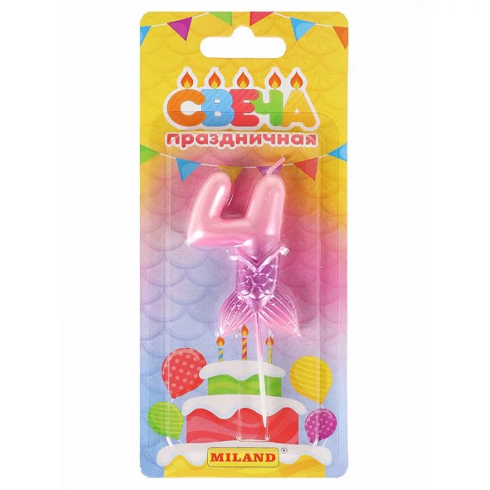 Свеча для торта "Русалка" , розовая. Цифра "4" C-7242