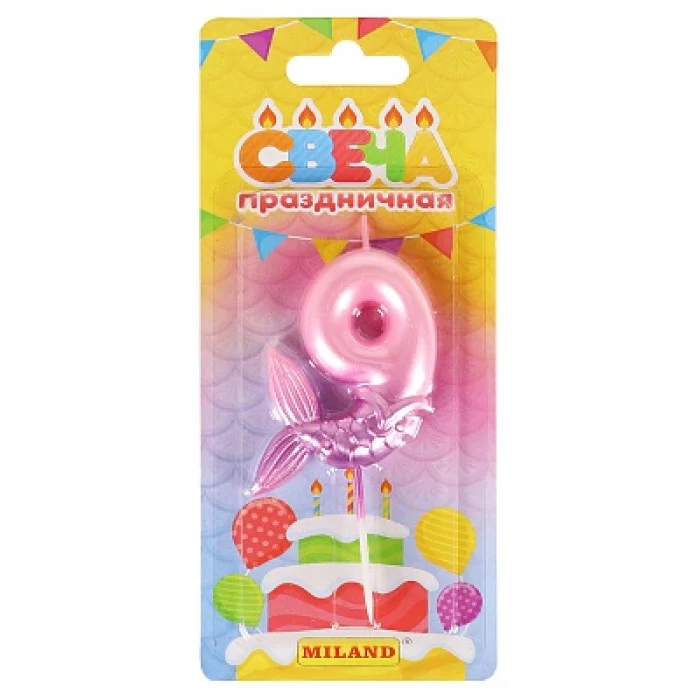 Свеча для торта "Русалка", розовая. Цифра "9" C-7247 461-0-144-87247-8