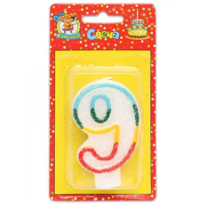 Свеча для торта с блестками Цифра "9" С-1213 466-5-295-51213-1