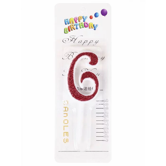 Свеча для торта с глитером,Прекрасный праздник, Цифра 6 С-4916