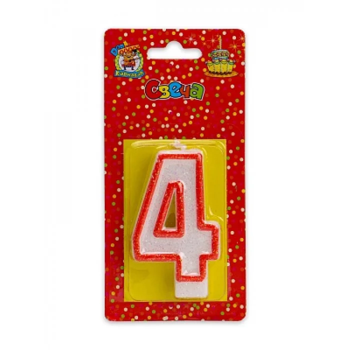 Свеча для торта с красной окантовкой блестками Цифра 4 С-2409