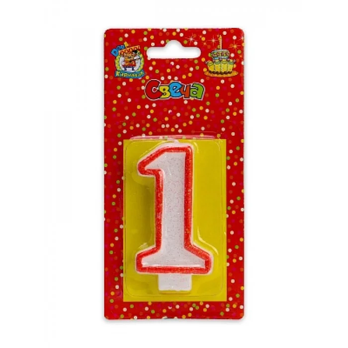 Свеча для торта с красной окантовкой с блестками Цифра 1 С-2406