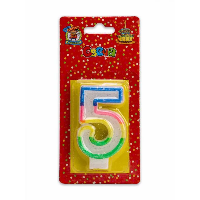 Свеча для торта с разноцветной окантовкой с блестками Цифра 5 С-2420