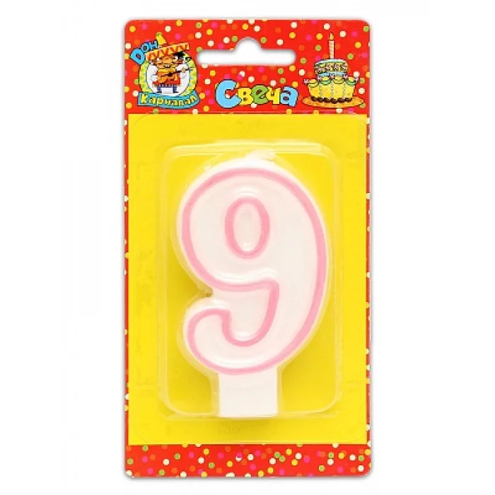 Свеча для торта с розовой окантовкой Цифра "9" С-1193 466-5-295-51193-6