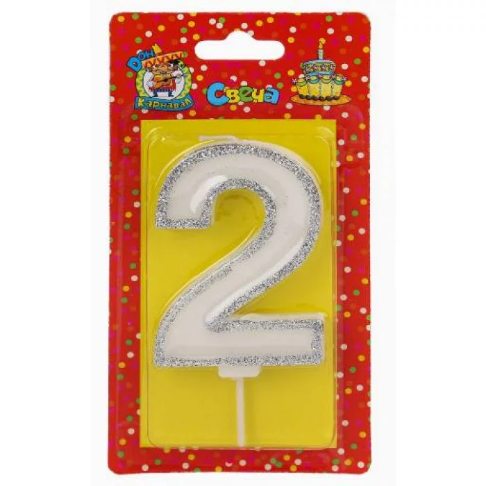 Свеча для торта с серебряной окантовкой (глиттер) Цифра 2 С-5956