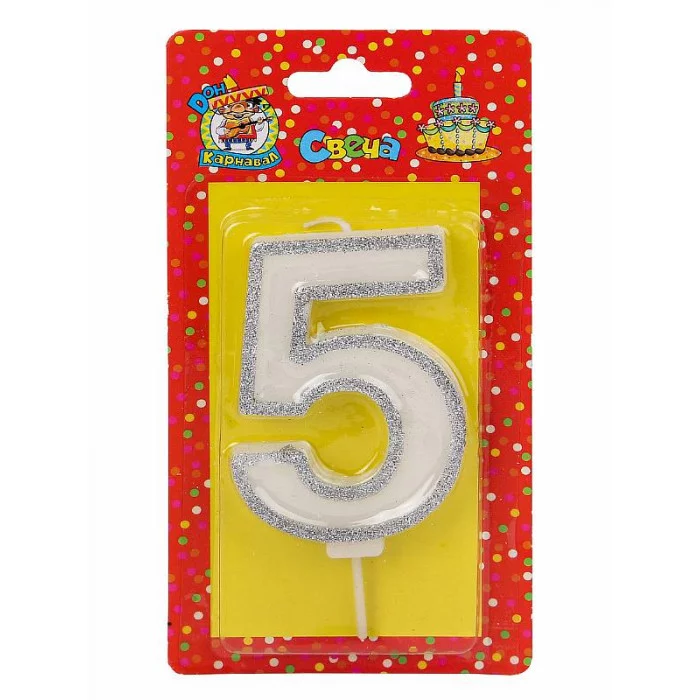 Свеча для торта с серебряной окантовкой (глиттер) Цифра 5 С-5959