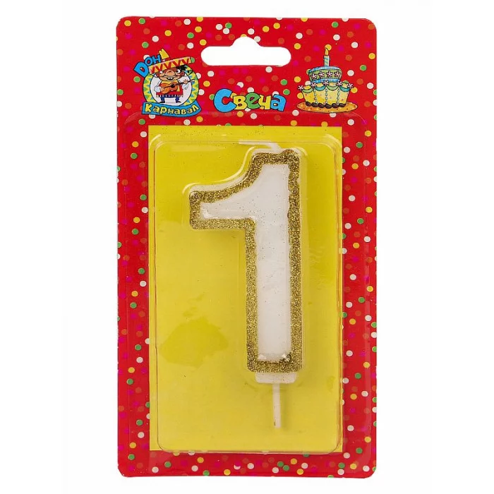Свеча для торта с золотой окантовкой (глиттер) Цифра 1 С-5945