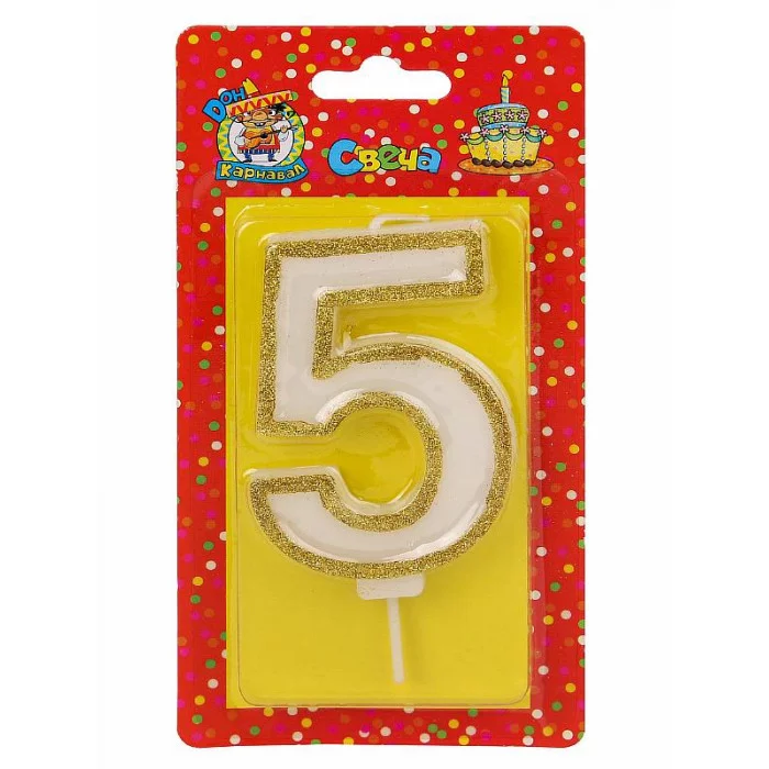 Свеча для торта с золотой окантовкой (глиттер) Цифра 5 С-5949