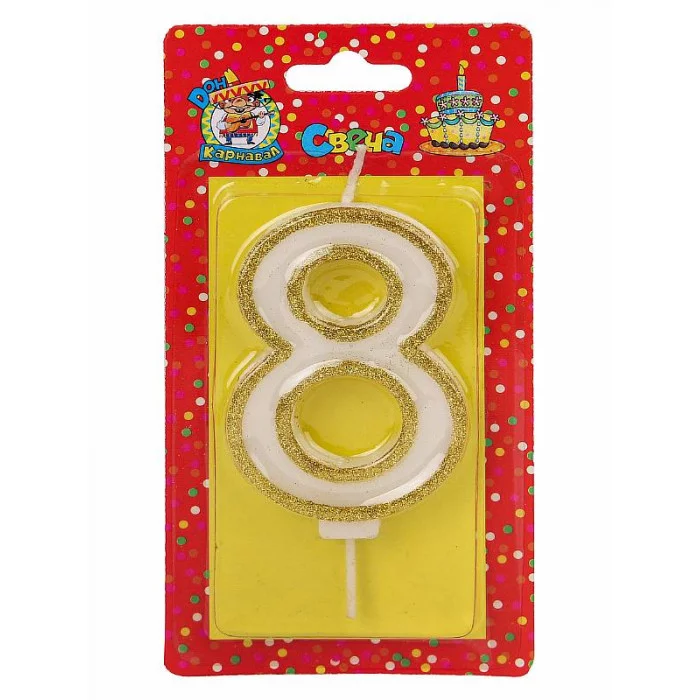 Свеча для торта с золотой окантовкой (глиттер) Цифра 8 С-5952
