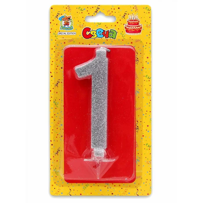 Свеча для торта Серебряный глиттер (большая) Цифра 1 С-1883