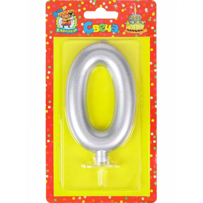 Свеча для торта Серебряный металлик (большая) Цифра 0 С-1872