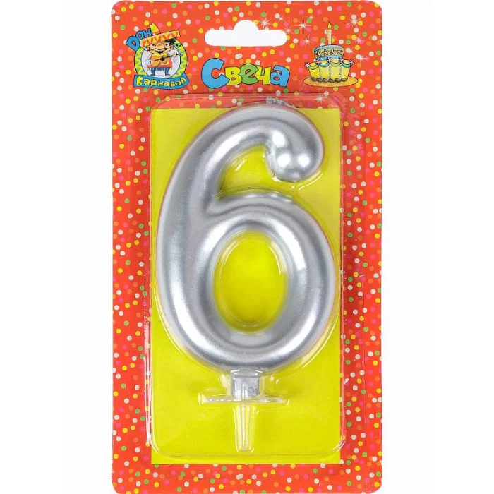 Свеча для торта Серебряный металлик (большая) Цифра 6 С-1878