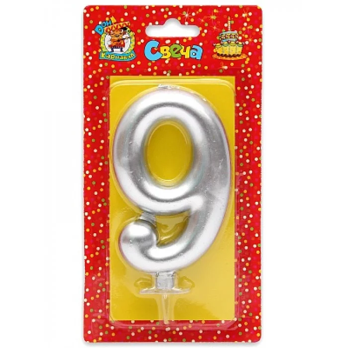 Свеча для торта Серебряный металлик (большая) Цифра 9 С-1881 466-5-305-41881-1