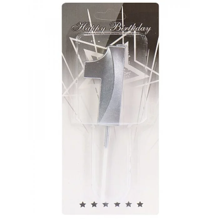 Свеча для торта Серебряный стиль Цифра 1 С-2973