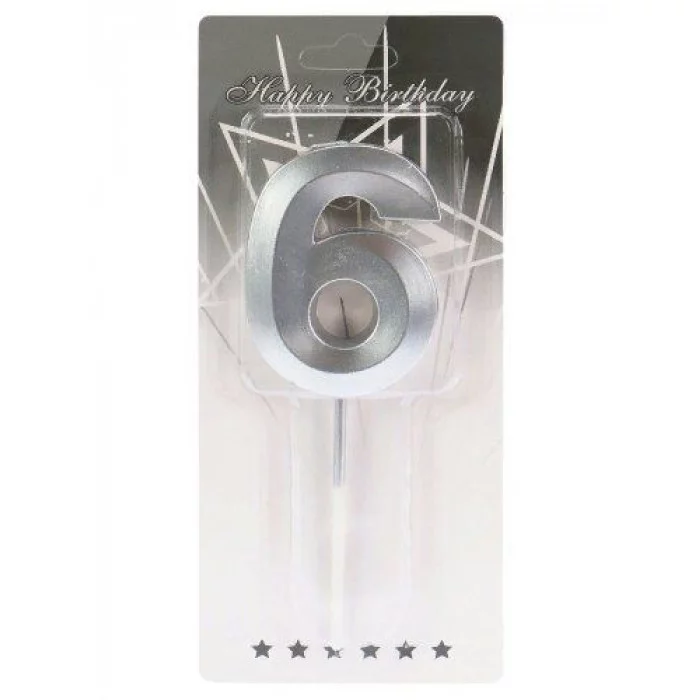 Свеча для торта Серебряный стиль Цифра 6 С-2978 461-0-144-82978-6