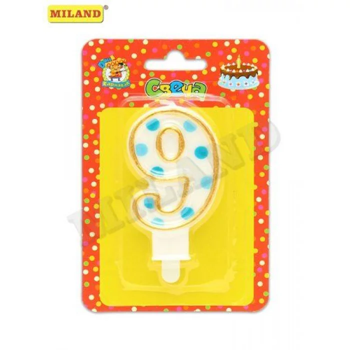 Свеча для торта. Синий горошек. Цифра 9 С-2614 466-5-303-22614-2
