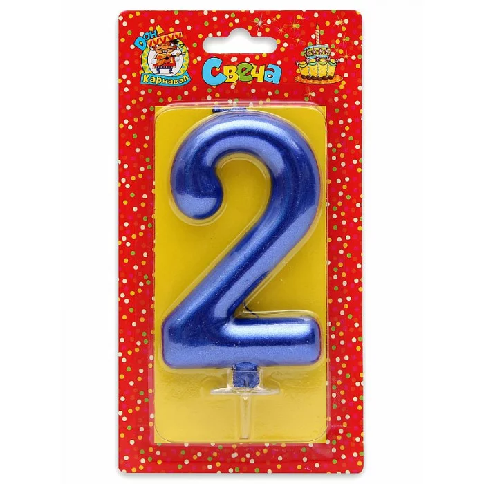 Свеча для торта Синий металлик (большая) Цифра 2 С-1844