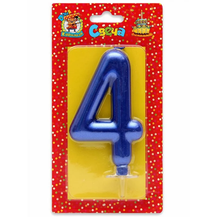 Свеча для торта Синий металлик (большая) Цифра 4 С-1846