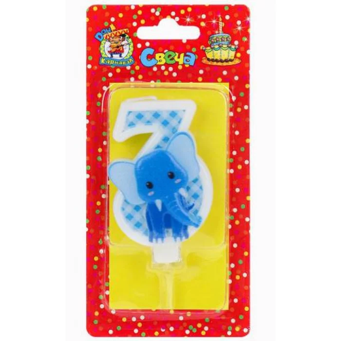 Свеча для торта Слоник Цифра 3 С-8327