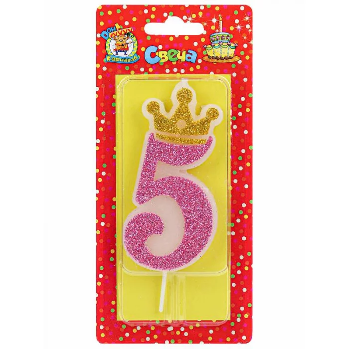 Свеча для торта Царская, розовая с глиттером Цифра 5 С-8352