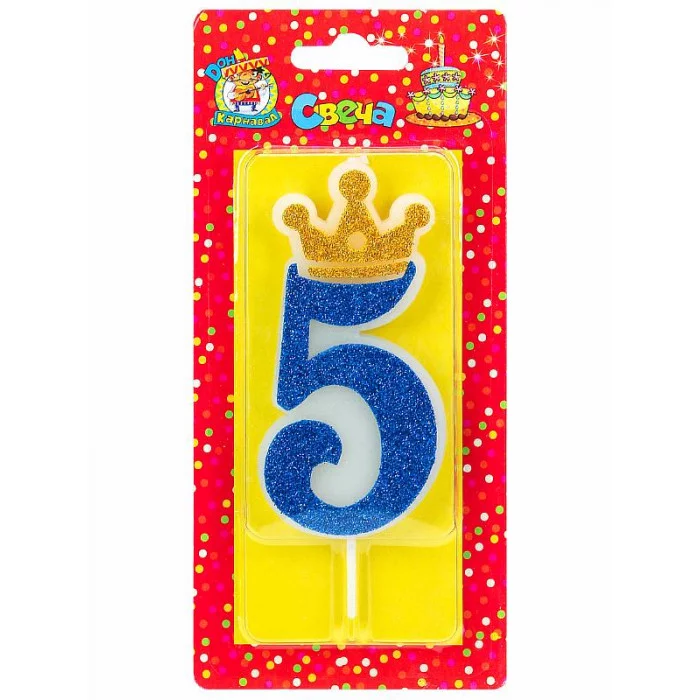 Свеча для торта Царская, синяя с глиттером Цифра 5 С-8362