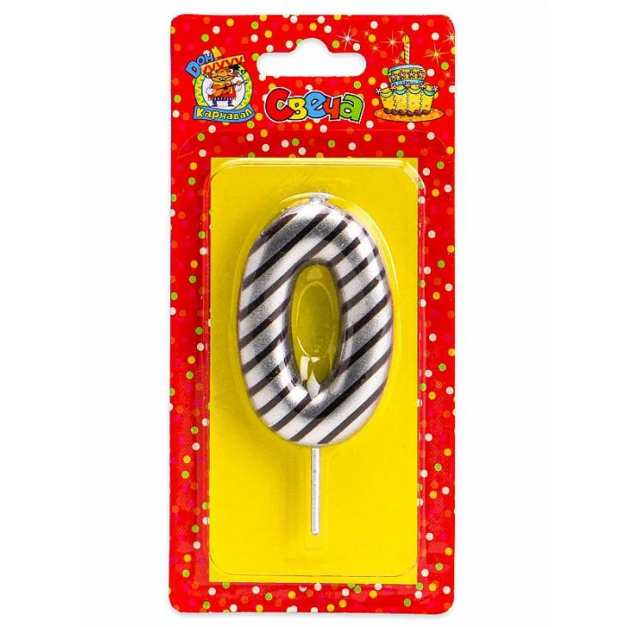 Свеча для торта в полоску, Цифра 0, серебряная С-2519