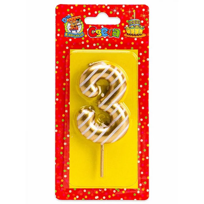 Свеча для торта в полоску, Цифра 3, золотая С-2532