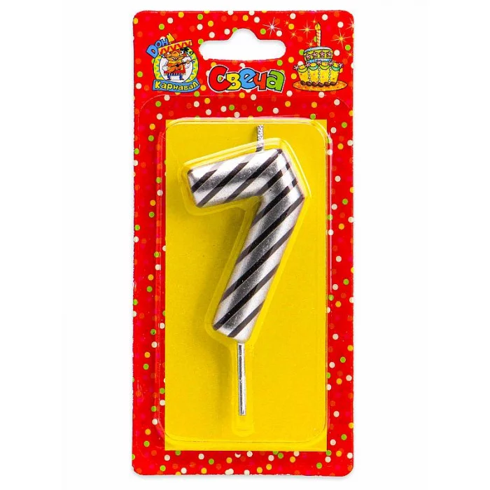 Свеча для торта в полоску, Цифра 7, серебряная С-2526