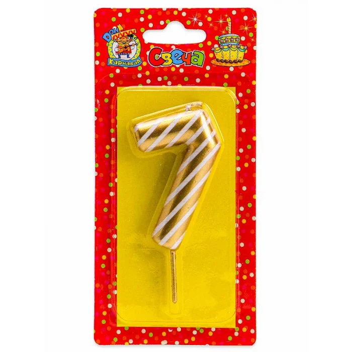 Свеча для торта в полоску, Цифра 7, золотая С-2536