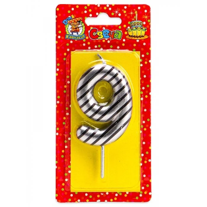 Свеча для торта в полоску, Цифра 9, серебряная С-2528 466-5-306-72528-4