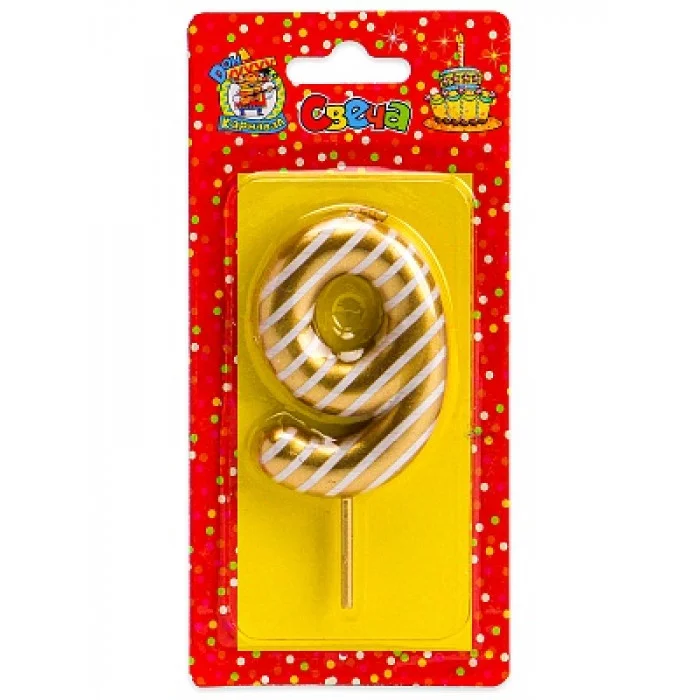 Свеча для торта в полоску, Цифра 9, золотая С-2538 466-5-306-72538-3