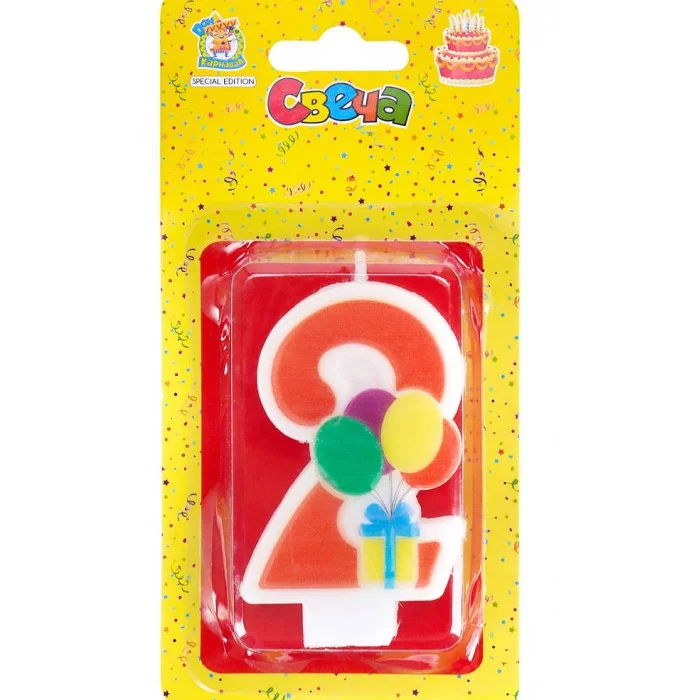Свеча для торта Весёлый праздник красная Цифра 2 С-5916
