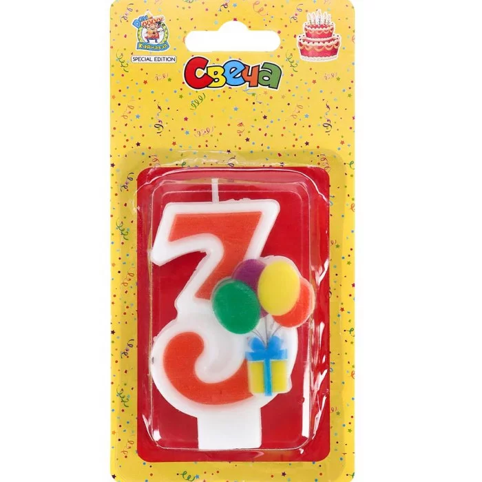 Свеча для торта Весёлый праздник красная Цифра 3 С-5917