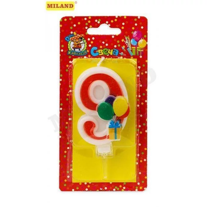 Свеча для торта Весёлый праздник красная Цифра 9 С-5923 466-5-307-35923-5