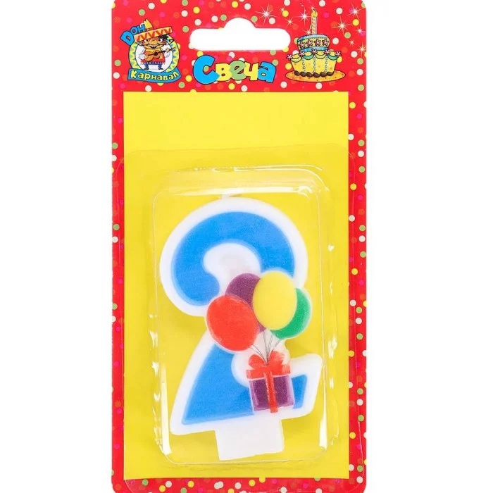 Свеча для торта Весёлый праздник синяя Цифра 2 С-5926