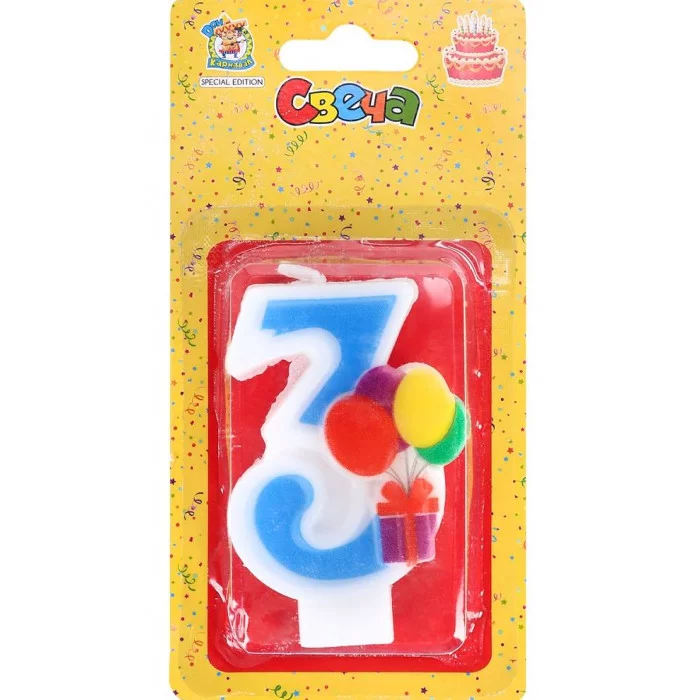 Свеча для торта Весёлый праздник синяя Цифра 3 С-5927