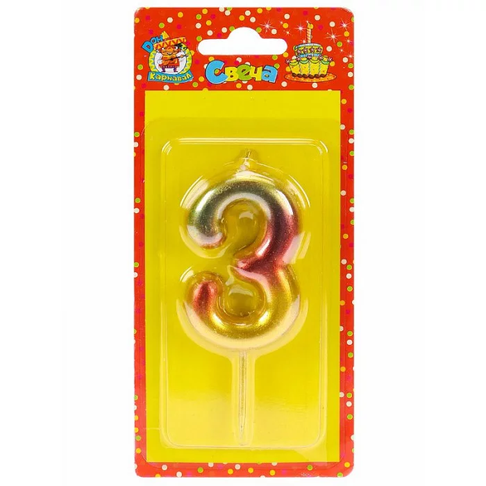 Свеча для торта Волшебный градиент Цифра 3 С-4088