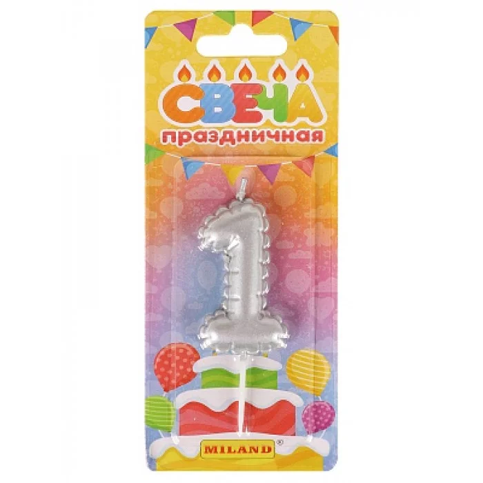 Свеча для торта "Воздушный шарик", серебряная. Цифра "1" C-7259