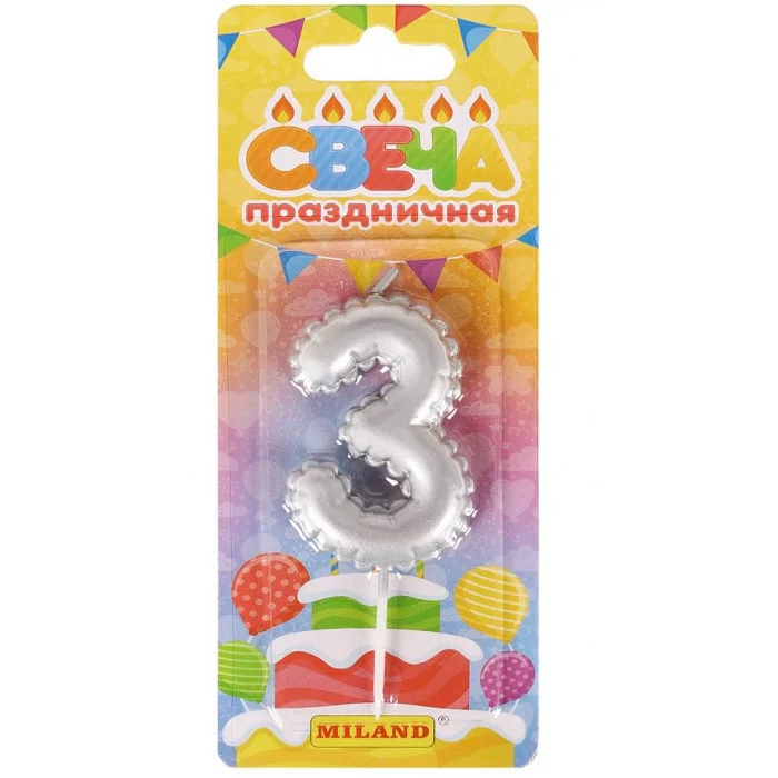 Свеча для торта "Воздушный шарик", серебряная. Цифра "3" C-7261