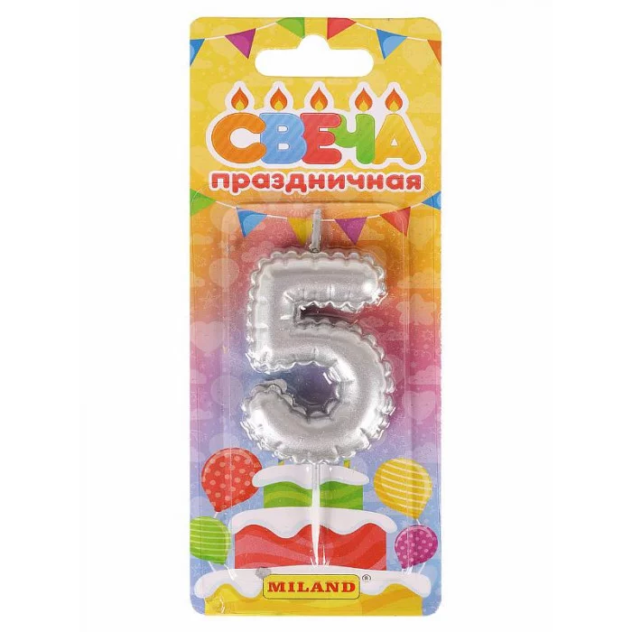 Свеча для торта "Воздушный шарик", серебряная. Цифра "5" C-7263