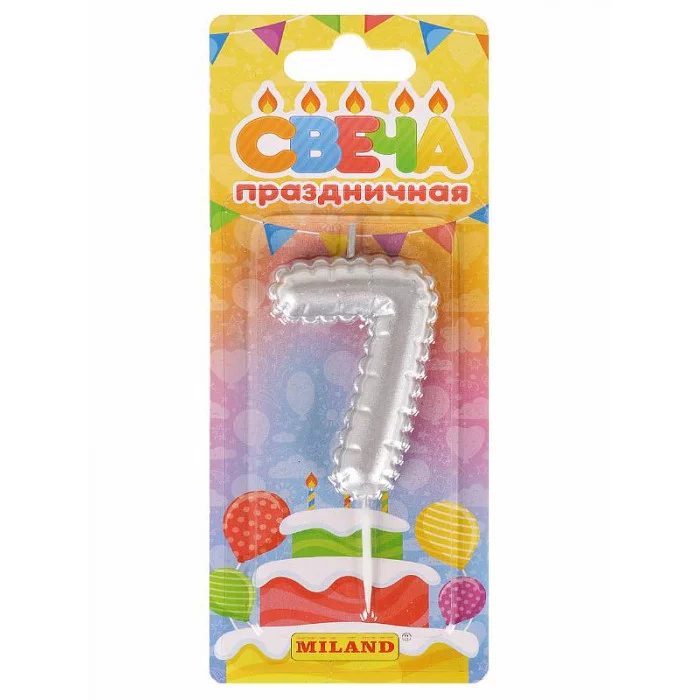 Свеча для торта "Воздушный шарик", серебряная. Цифра "7" C-7265