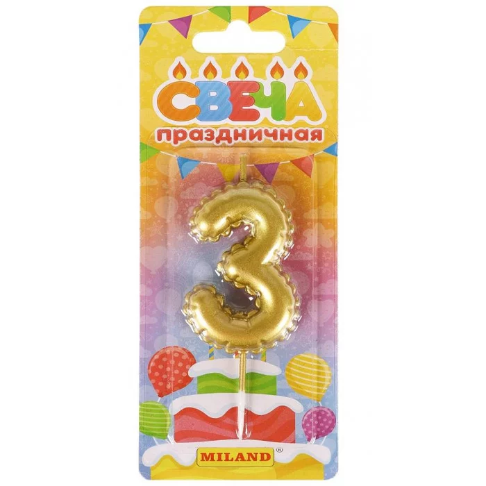Свеча для торта "Воздушный шарик", золотая. Цифра "3" C-7251