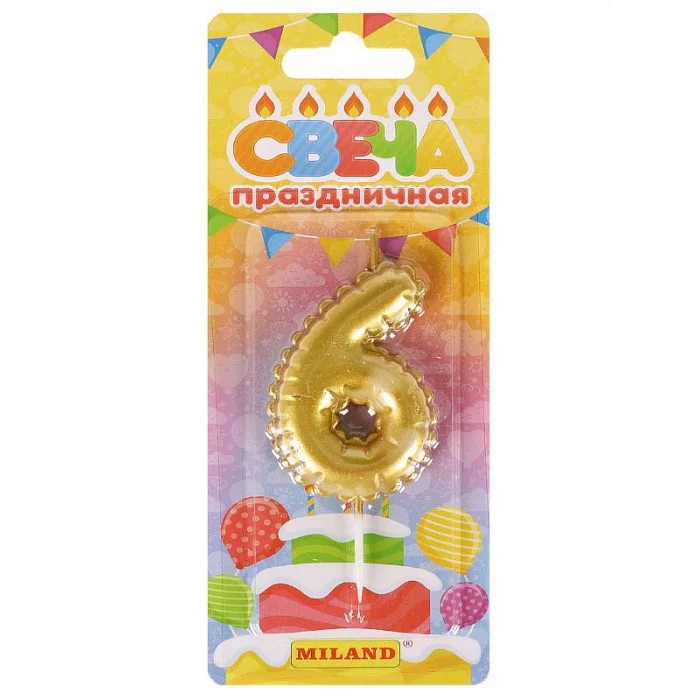 Свеча для торта "Воздушный шарик", золотая. Цифра "6" C-7254