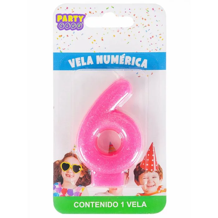 Свеча для торта Ярко розовая. Цифра 6 С-3013