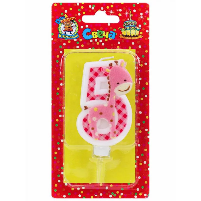 Свеча для торта Жирафик Розовый Цифра 5 С-8319