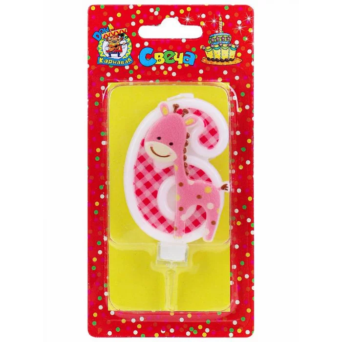 Свеча для торта Жирафик Розовый Цифра 6 С-8320